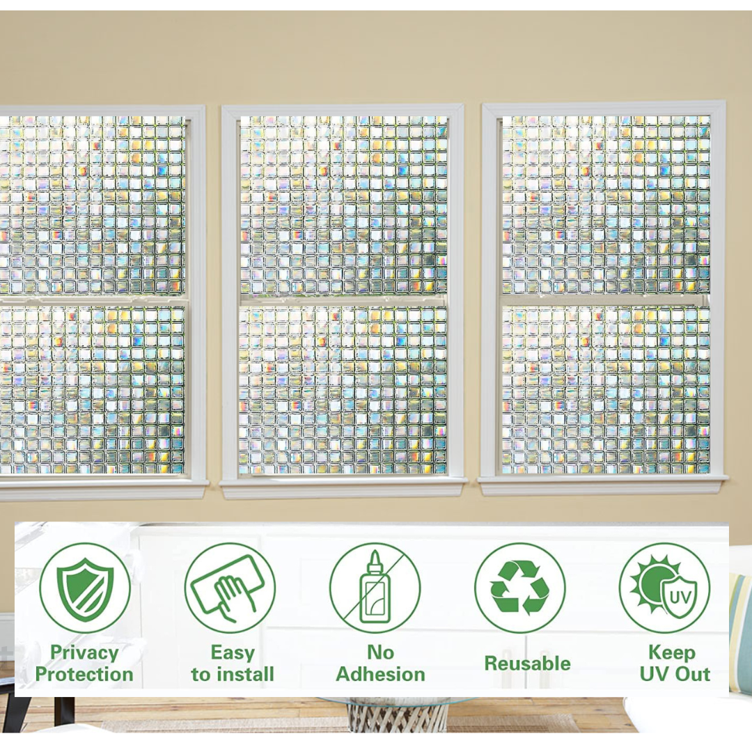 - PRIVACY PROTECTION: Wallnest Mosaic pattern design provides excellent privacy Window Film Is Made Of Thickened Material. The Glass Film Can Block Up To 90% UV Rays, Clear the Air and Avoid Harm to Bodies. If You Need to Work at Home, It Can Keep Out the Bright Light and Excessive Heat Energy, And Keep Comfortable Light and Heat, So That the Window Sticker Can Bring You a Relaxed and Happy Mood.