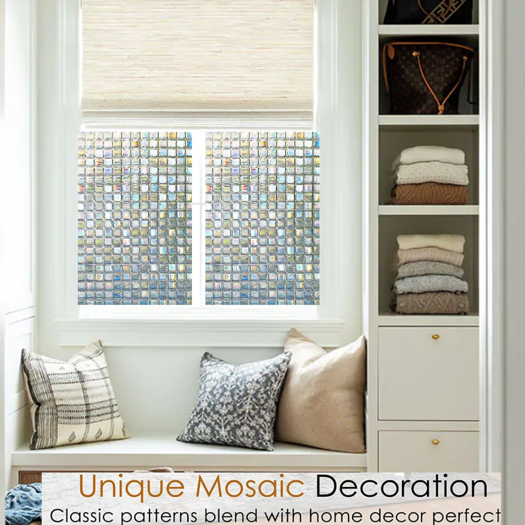 Wallnest 3D Mosaic Privacy Window Film, Self-Adhesive, Heat Control, Decorative Glass Film for Home and Office Frosted Glass