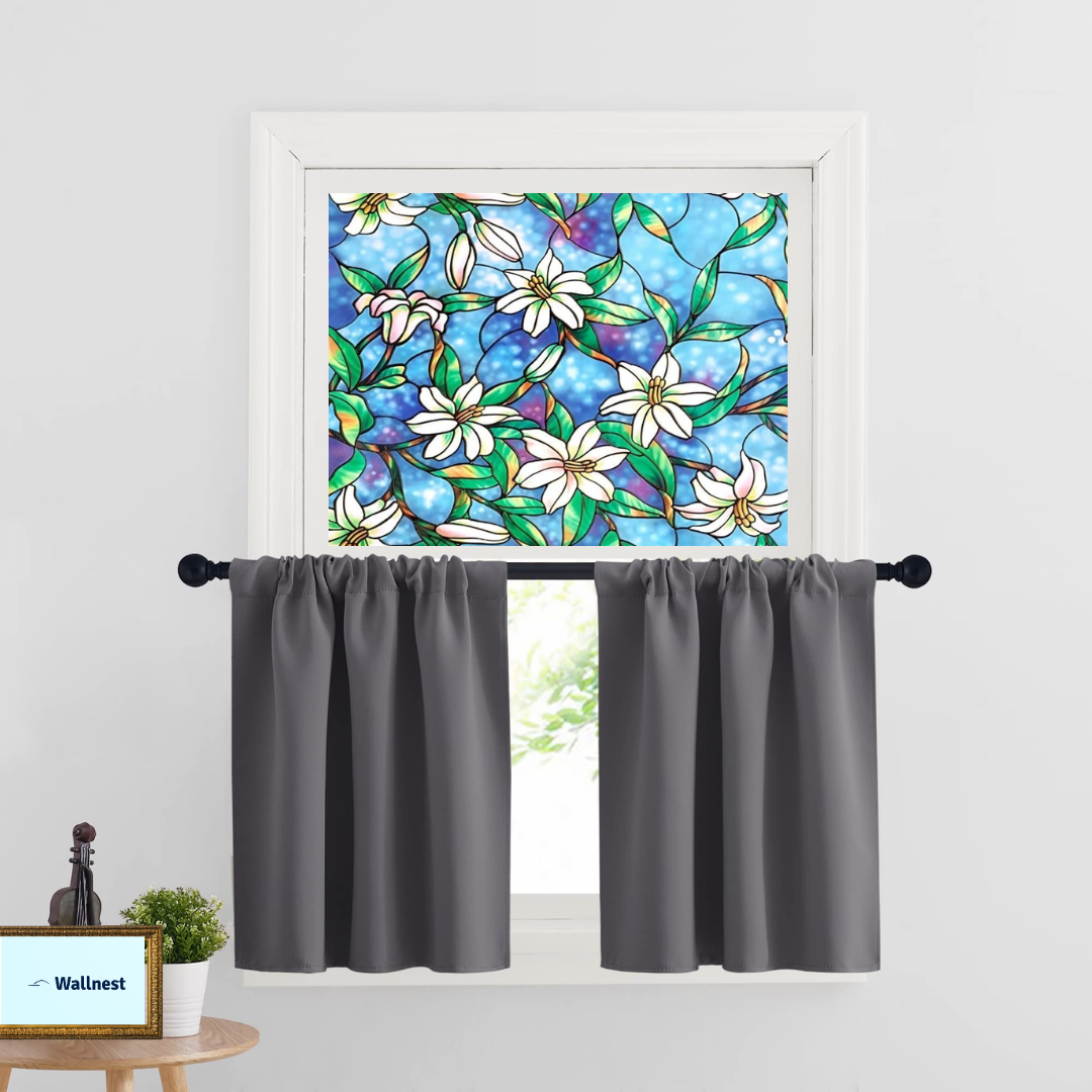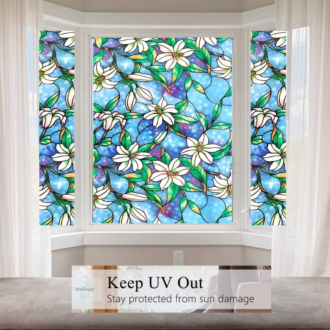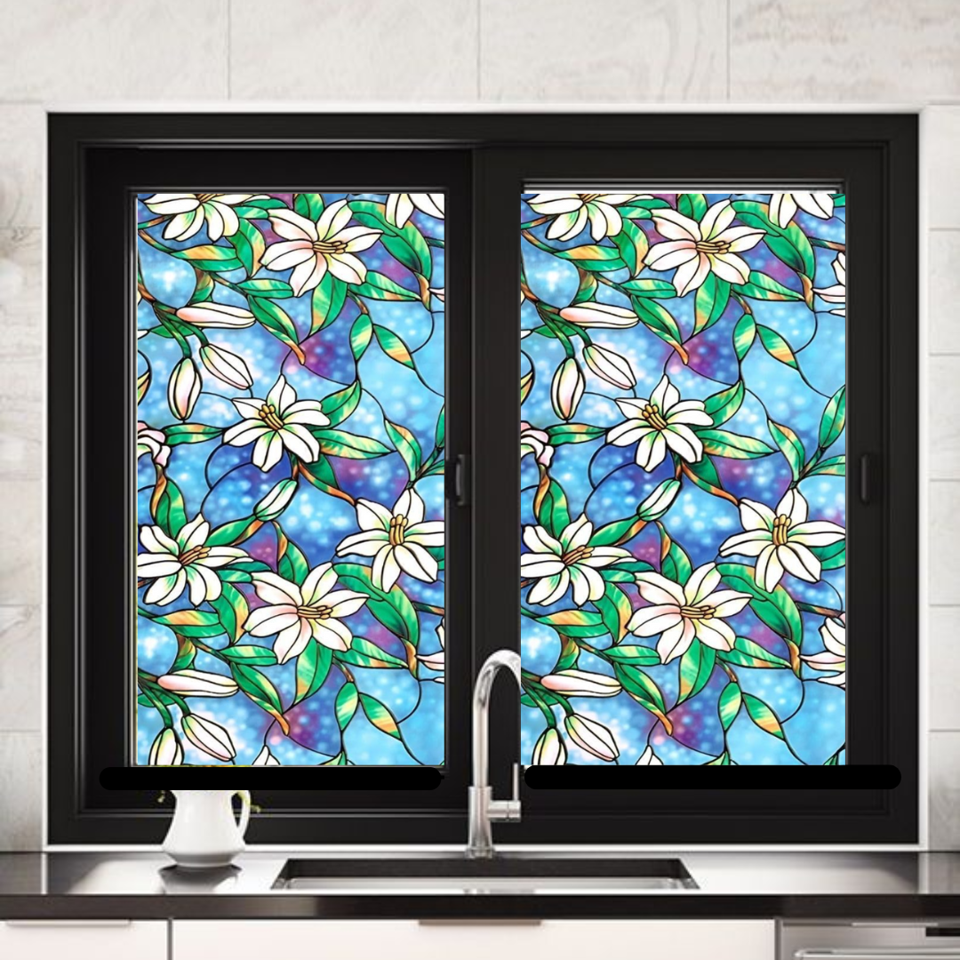 Wallnest Premium Privacy Window Sticker New Pattern Frosted Vinyl Sheets for Front Door Bathroom Sidelight Small Windows Opaque Sheet | Removable | Anti-UV. Blue Lily Flowers