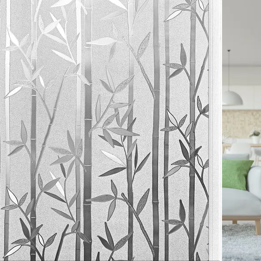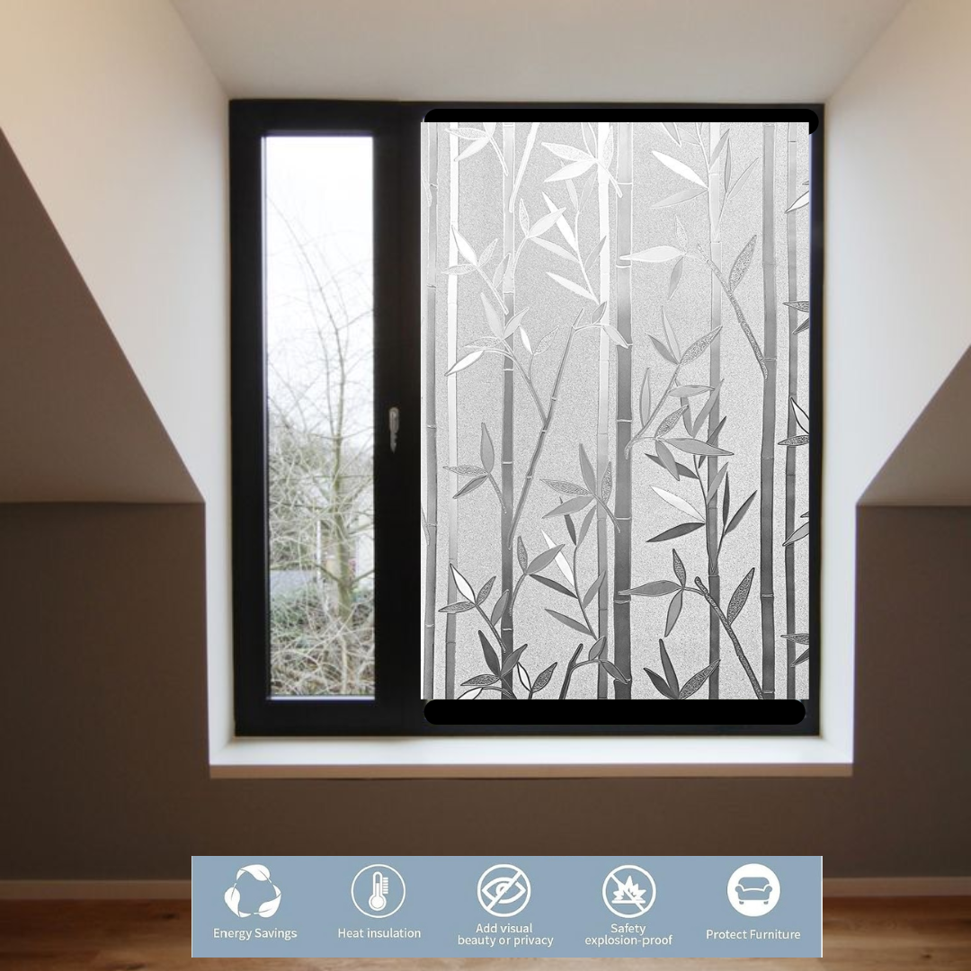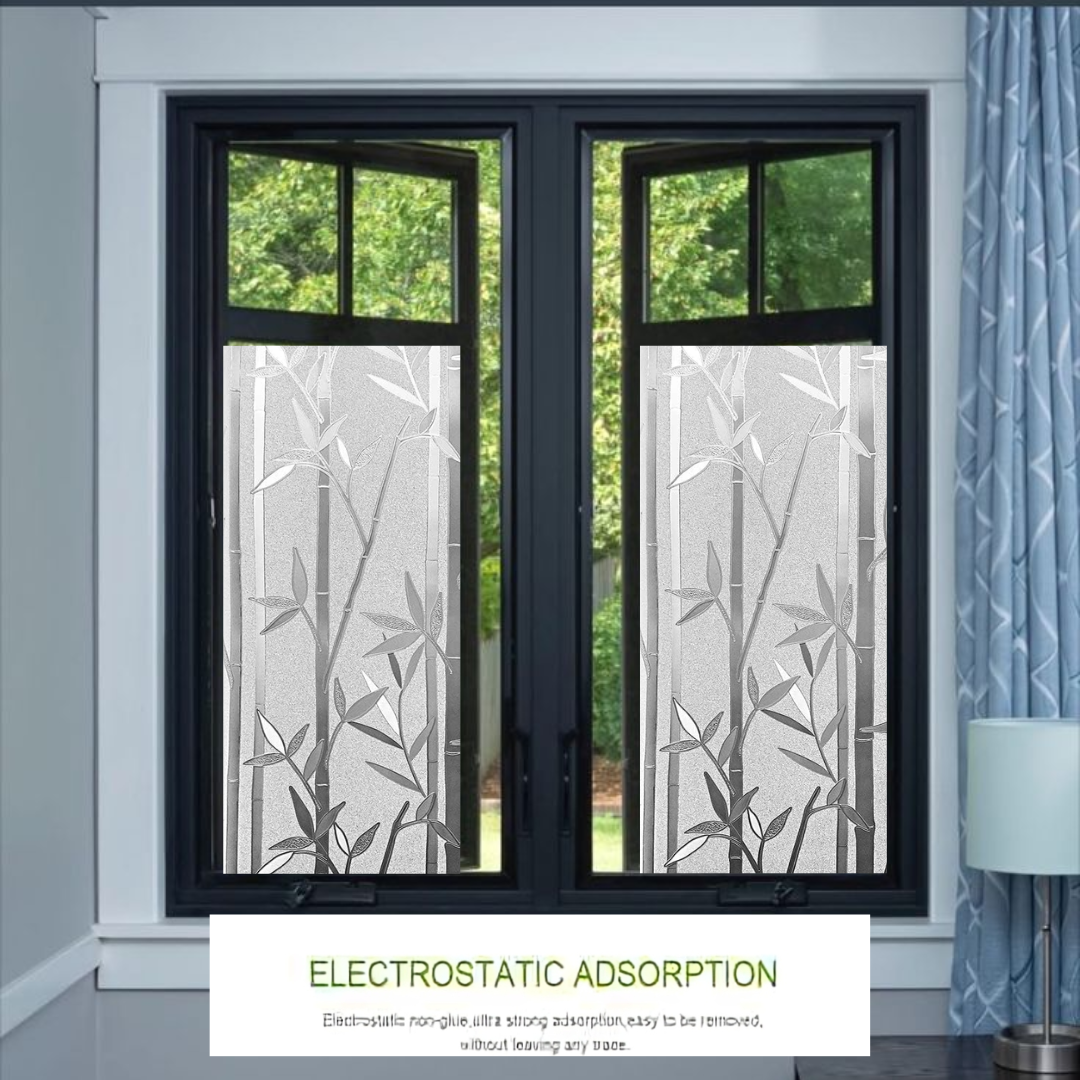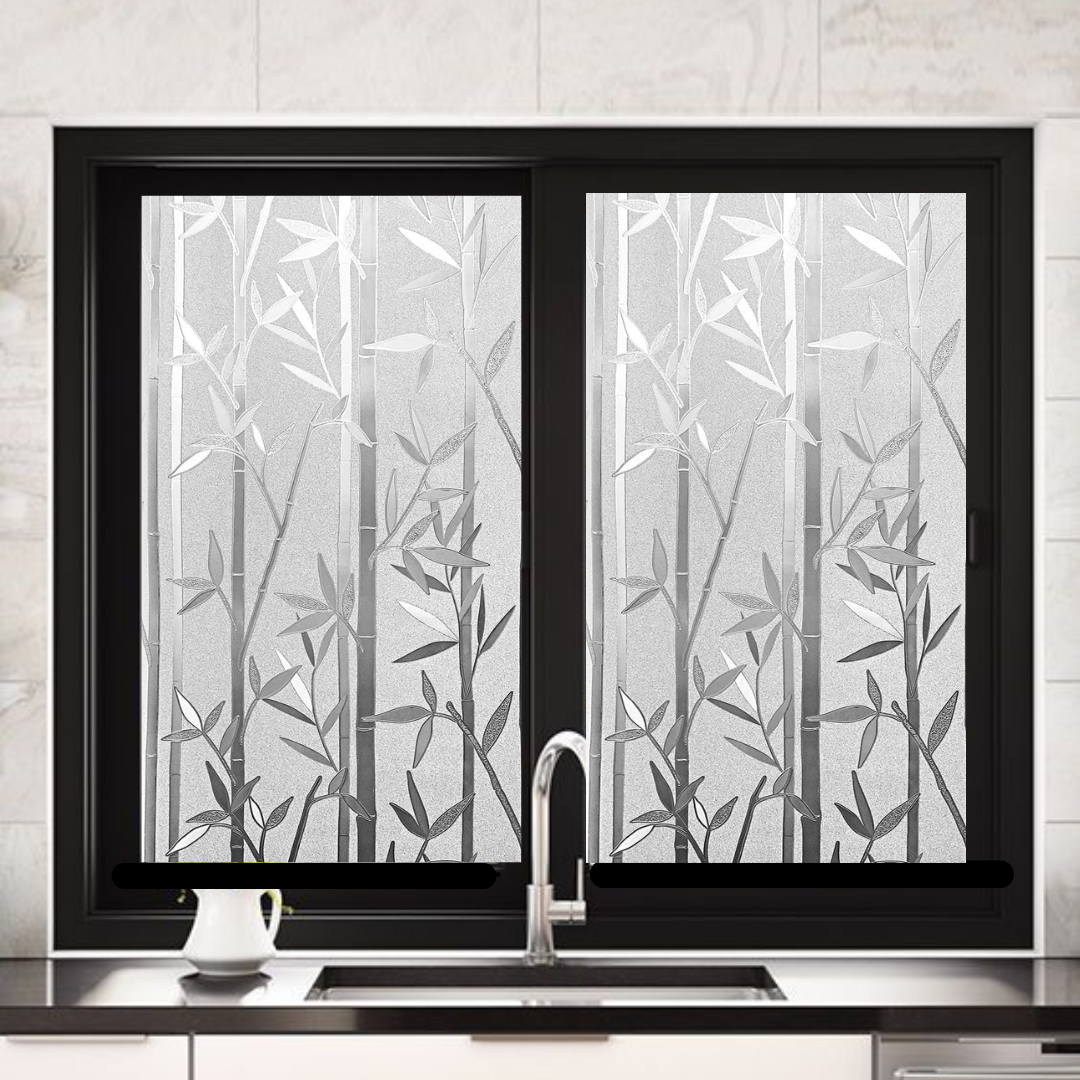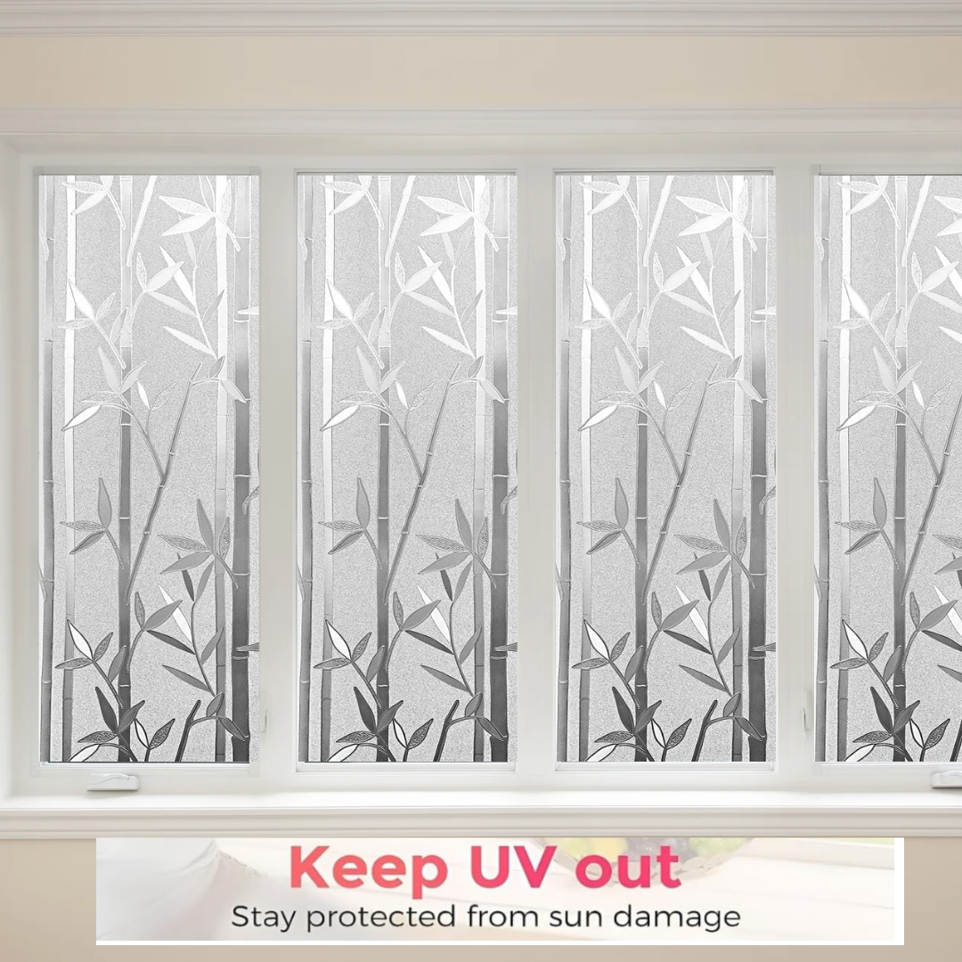 Wallnest Privacy Window Film Frosted Glass Film No Glue Anti-UV for Privacy Window Film Frosted Glass Non-Adhesive Anti-UV Window Sticker for Office Bathroom Living Room Crystal Bamboo