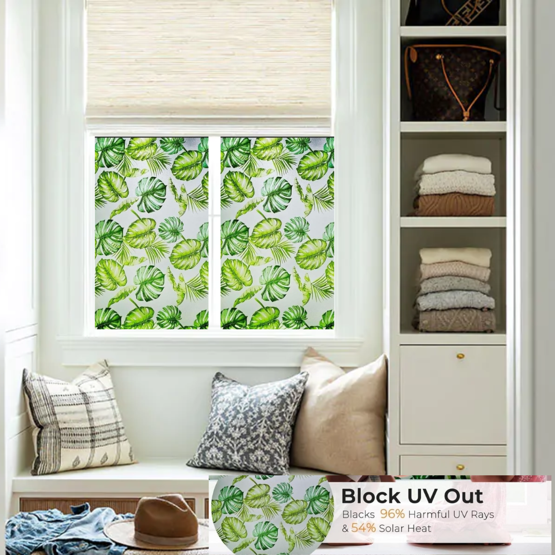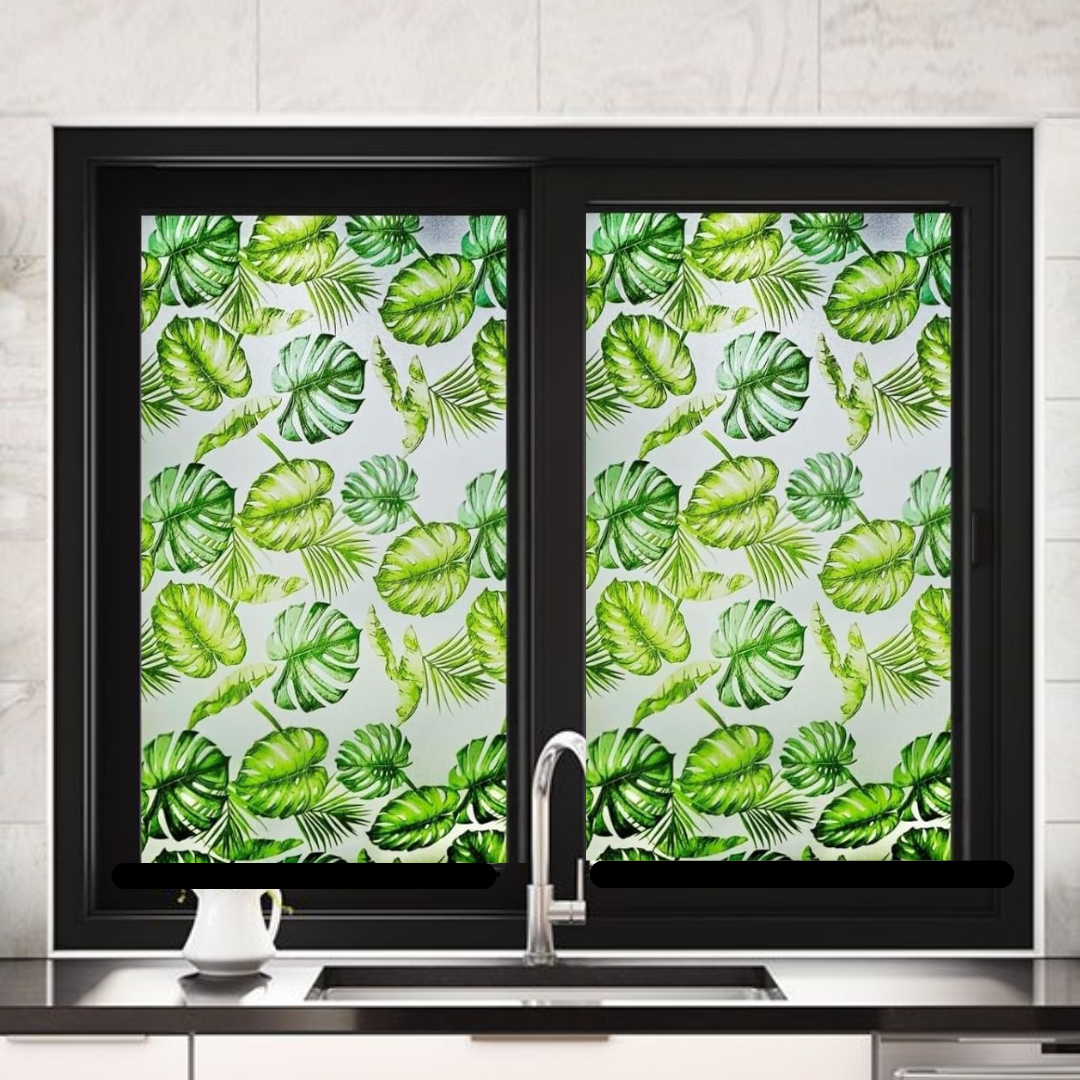 - PRIVACY DESIGN: Wallnest Vinyl Beautiful tropical leaf pattern provides elegant privacy while allowing natural light to filter through the frosted window film
