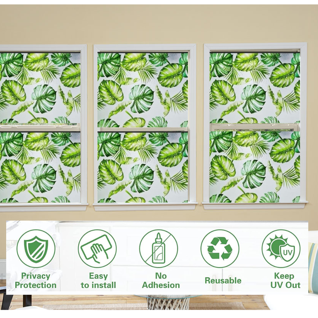 Wallnest Tropical Leaf Privacy Window Film, UV Blocking Glass Sticker, UV Protection, Heat Reduction, Decorative Frosted Film Self Adhesive Window Film for Home Office Bathroom
