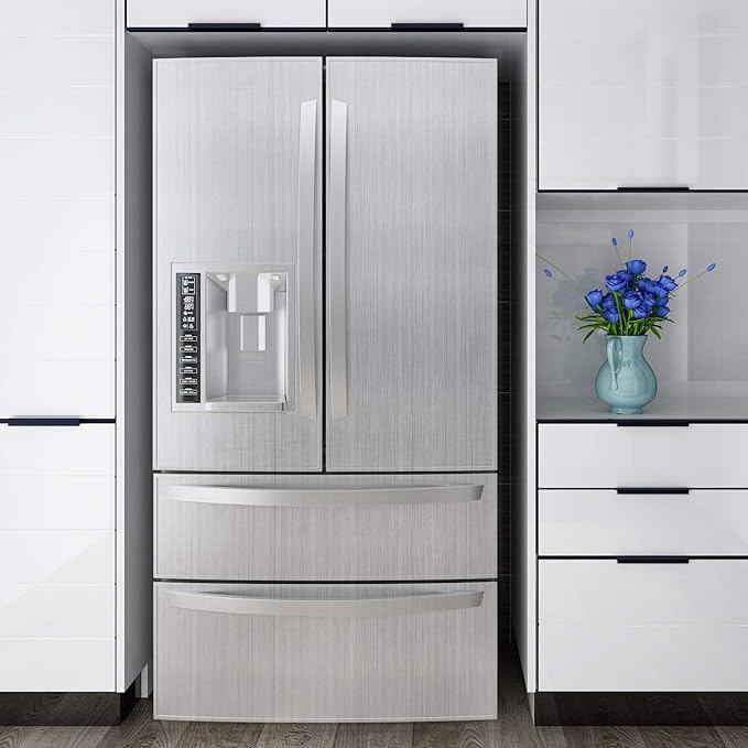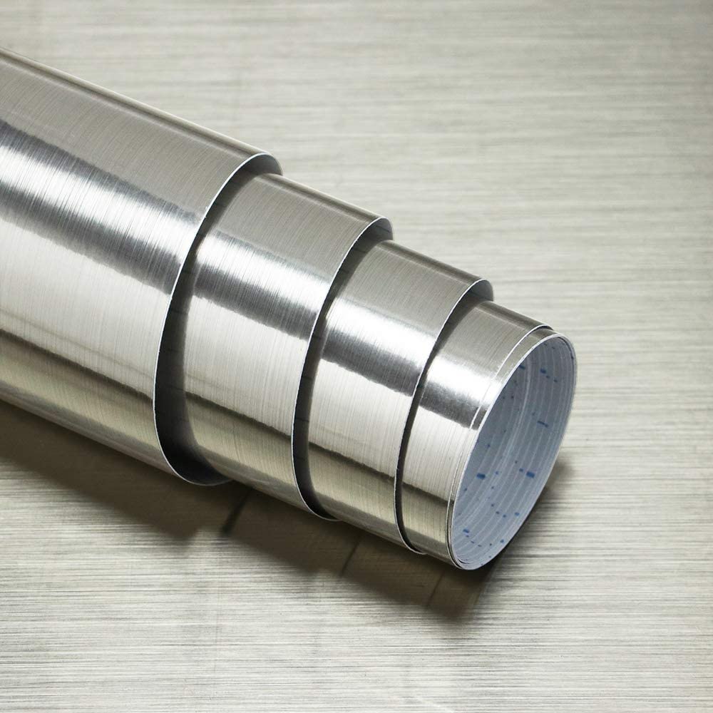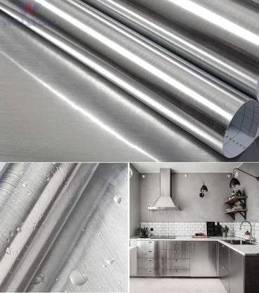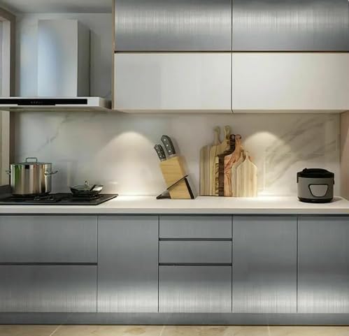 Wallnest Wallpaper Self Adheisve Silver Brushed Contact Wallpaper Vinyl Removable Kitchen Cabinet Countertopesive Peel and Stick Wallpaper for Refrigerator Furniture Waterproof