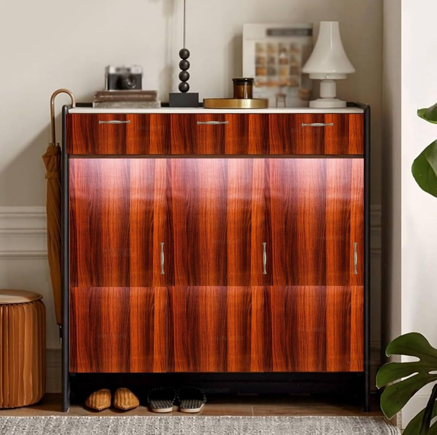 - VERSATILE APPLICATION: Ideal for kitchen cabinets, doors, shelves, almirahs, and various furniture surfaces, offering a luxurious walnut brown finish